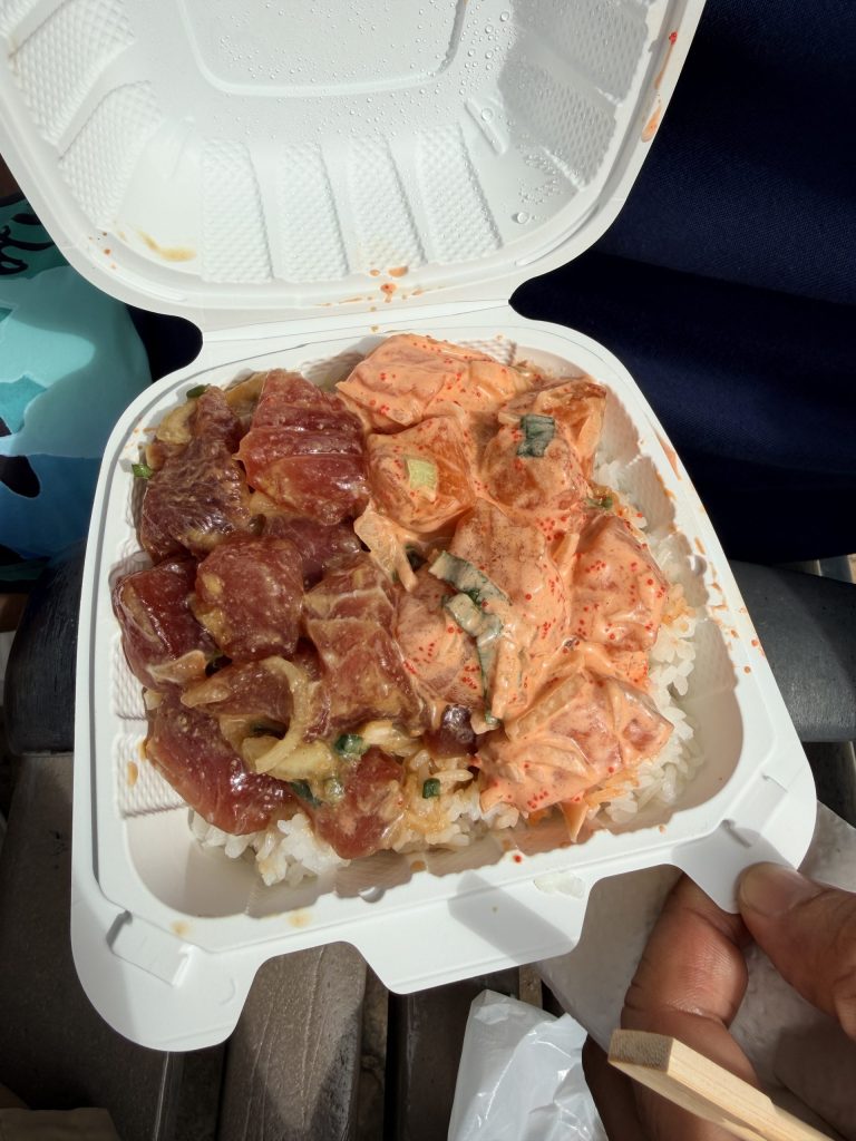 日本人観光客にも人気なPOKEのマグロスポット。わたしもここのポケが大好きで、酢飯(Sushi Rice)が選べるのがポイントです。