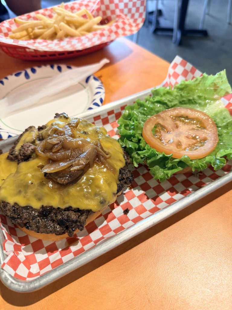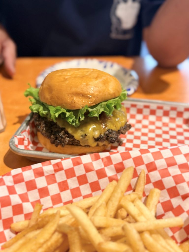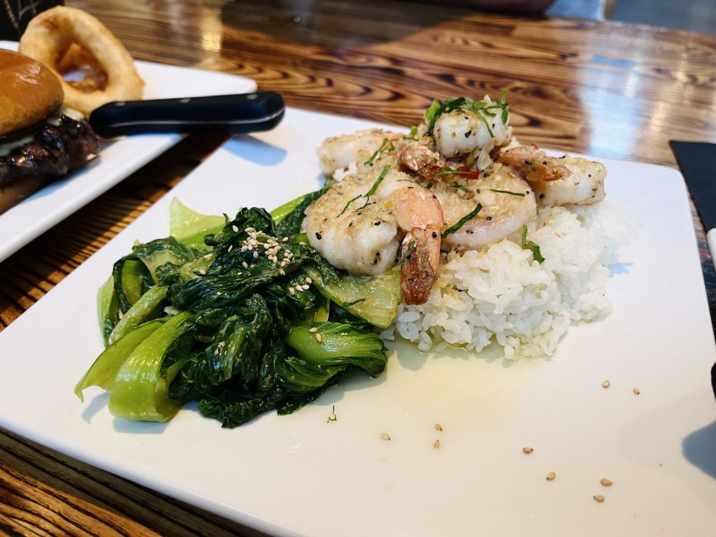シンプルなハンバーガーは、しっとりジューシー。そしてガーリックシュリンプは殻なしで食べやすく、ガツンとガーリック。オイルにひたっひたになったライスが美味しいのでおすすめです。
