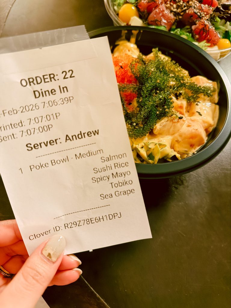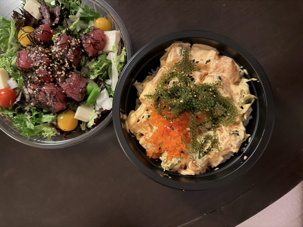 魚はサーモン、お米はSushi Rice、ソースはスパイシーマヨ、そしてとびっこトッピングが好きすぎて2日連続でいただきました。